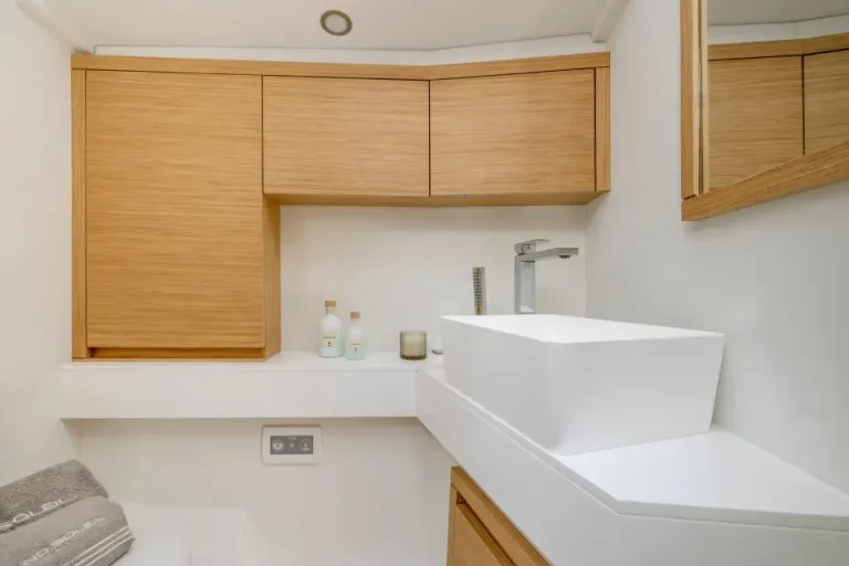 The hull lines are an evolution of the concepts studied for the GS 44, giving maximum attention to the balance of volume as the heel increases. The bow profile remains very fine to maintain good performance in light airs and ensure a smooth passage through the waves. As on the GS 44, great importance was placed on the aft positioning of the shaft, enabling Nauta Design to develop an innovative layout and obtaining a benefit on both performance and comfort.