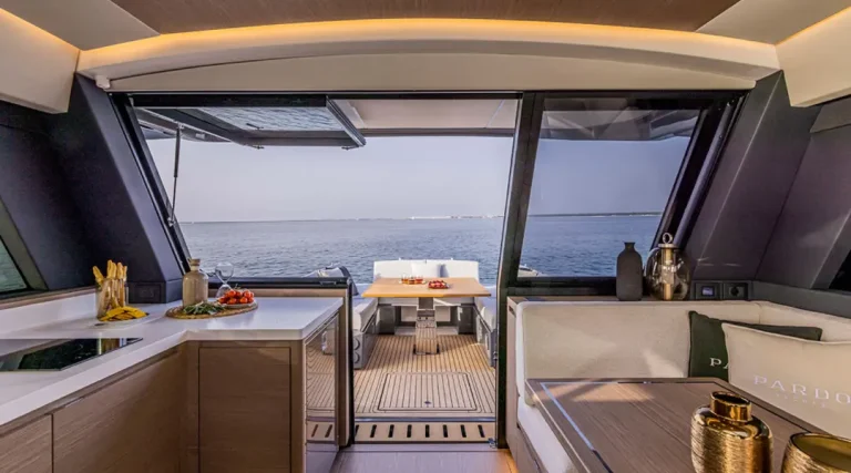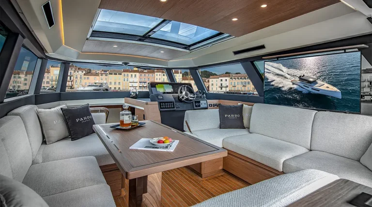 Space, luminosity, elegance and comfort. The innovative concept of the Pardo GT stems from an idea to create a convivial boat that could best connect the interior (the sheltered area) with the exterior. The boat features innovative solutions that maximize the comfort of life on board and the ease of use in every moment of the nautical routine.